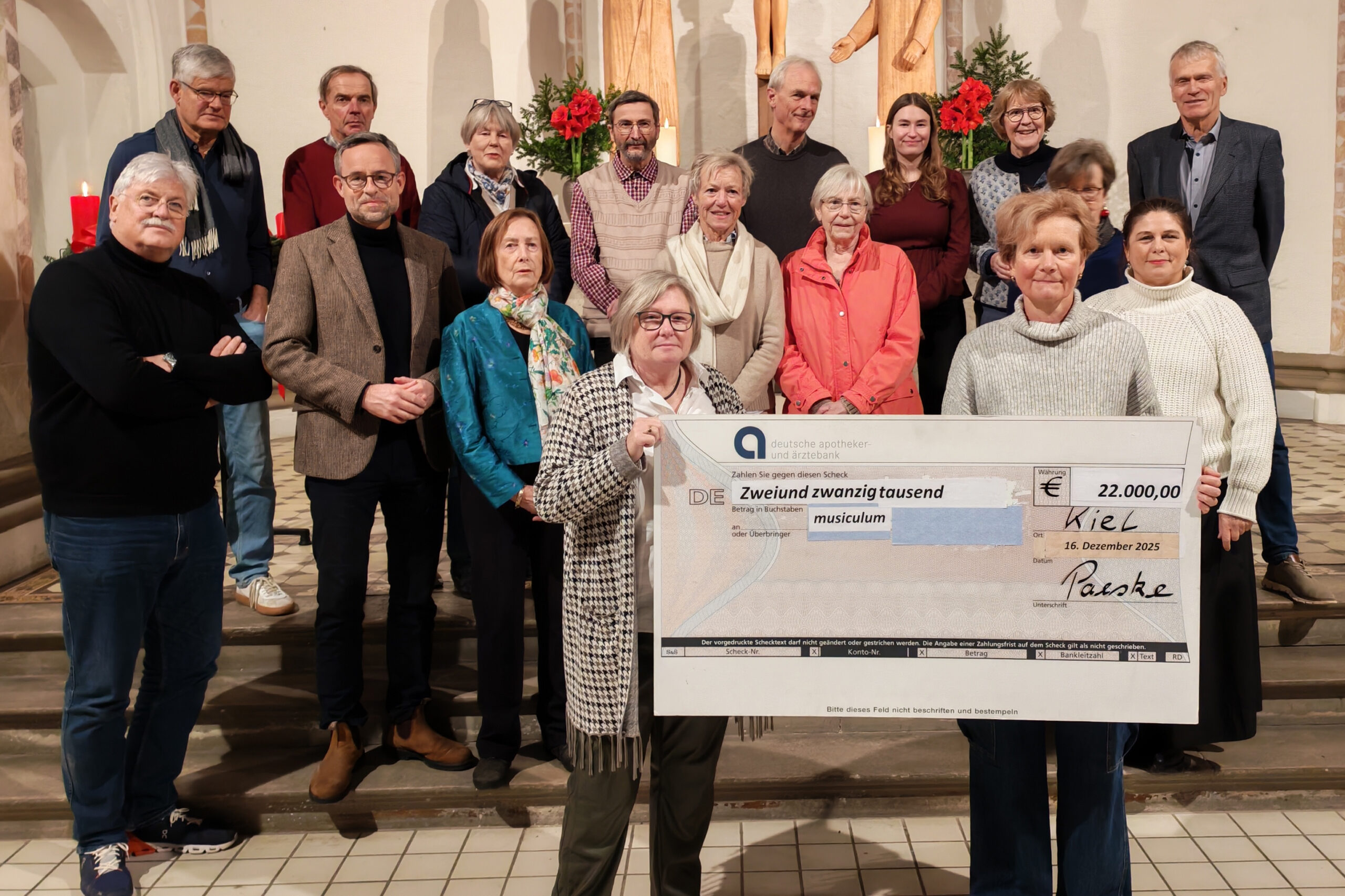 Am 2. Advent fand rund um die Pauluskirche Kiel der traditionelle Weihnachtsmarkt statt. Die Erlöse aus dem Verkauf von Waffel, Punsch und Christbaum kommen jedes Jahr einer anderen gemeinnützigen Einrichtung zugute. In diesem Jahr fiel diesbezüglich die Wahl auf das musiculum. Im Rahmen einer feierlichen Zusammenkunft in der Kirche nahm die Geschäftsführerin des musiculums Anne Hermans den symbolischen Spendenscheck in Höhe von 22.000,- Euro entgegen.